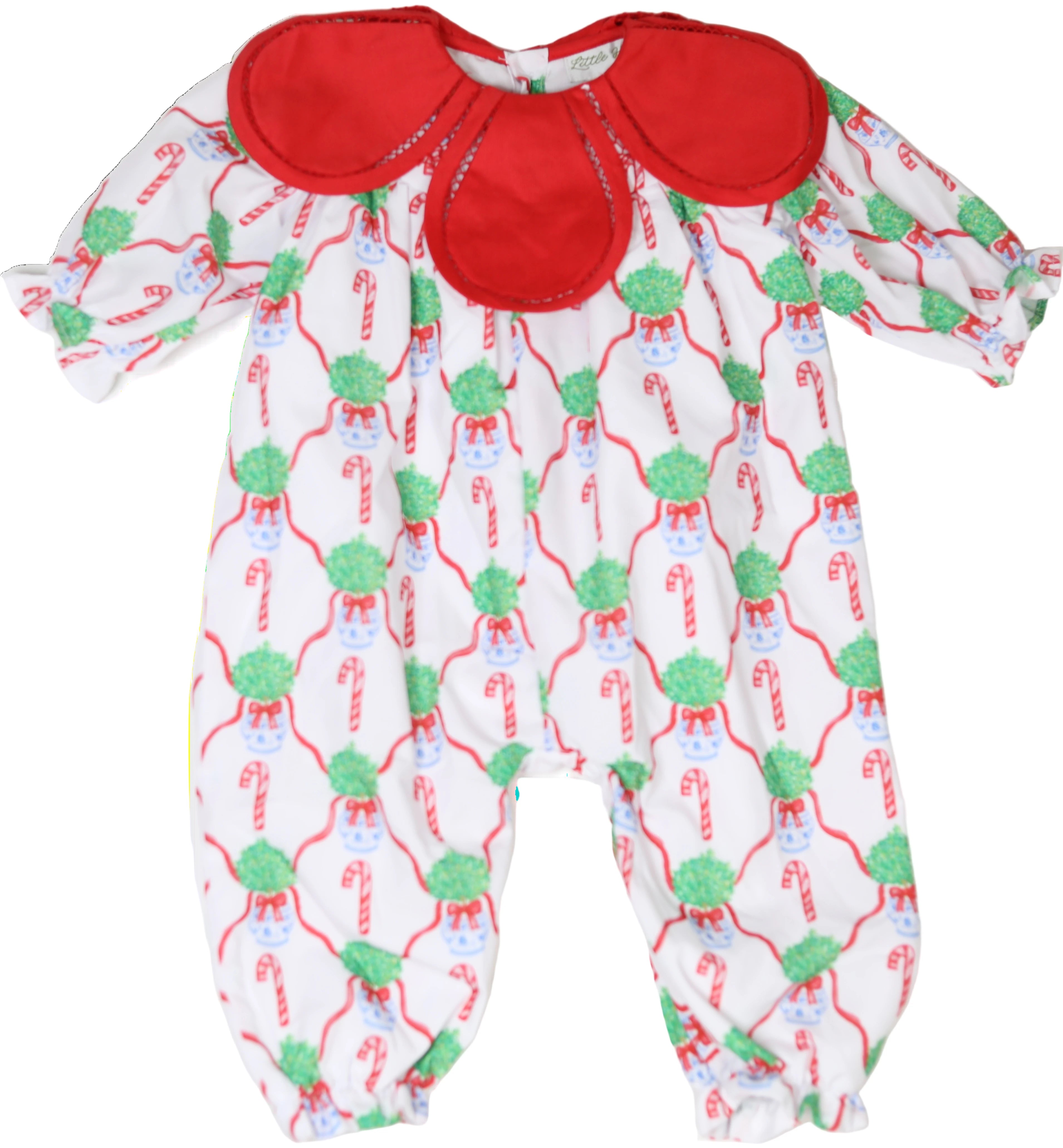 Celebrate the season in style with the Candy Cane Garden Romper! This fun and comfy outfit features a bright red corduroy petal neckline and a festive holiday ginger jar pattern, perfect for cheerful play and holiday fun. Soft and cozy, it’s sure to keep your little one smiling all season long.