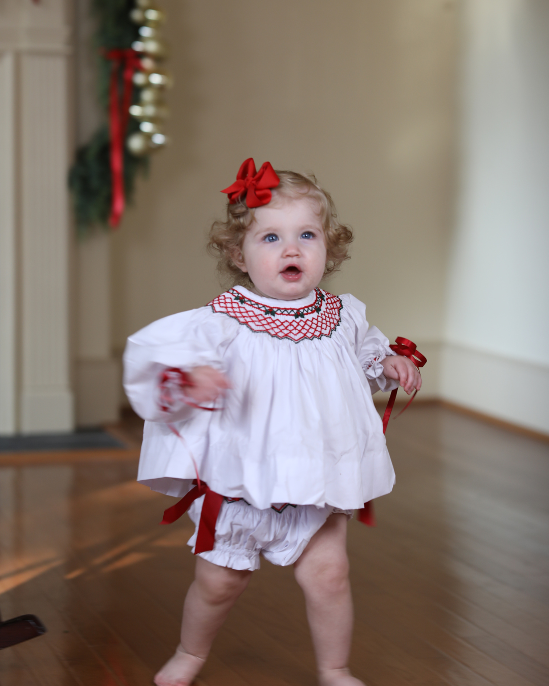 Capture holiday magic with the Under the Mistletoe Smocked Set! This beautifully hand-smocked diaper set is perfect for heirloom photos and festive fun. Soft, detailed, and irresistibly charming.